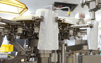 順番にスープとゴロゴロの具材がパッケージに流し込まれていき、一つひとつパッキングされていきます。