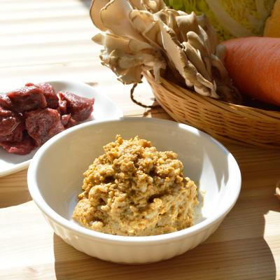 消化に良く「おなかの調子が気になるパートナーやシニア期のパートナー」が食べやすく、オーナー様も安心して与えられるそんなごはんを作りたい。という声から生まれました。