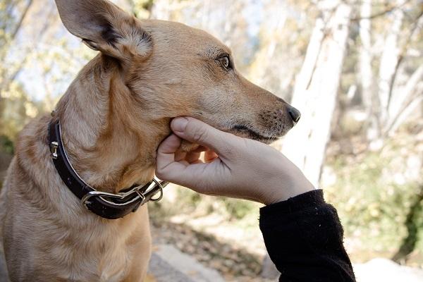 2. 目薬を持っていない手で、愛犬のあごの下と軽く支える