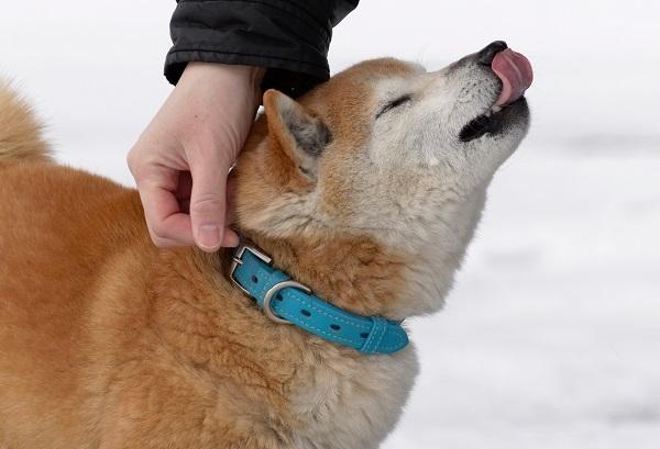 まずは頭をよしよしとなでる延長で首回りもなでて、首を触られることに慣れさせます。