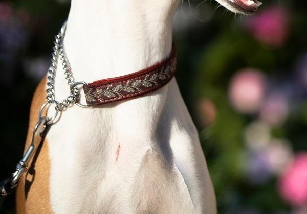 頭が小さいため首輪が頭から抜けやすく、また細い首に負担がかかりやすいです。そのため幅が広いものであれば抜けにくく、中でもハーフチョークやマーチンゲールカラータイプでは比較的犬種専用に作られたものが見つかります。