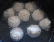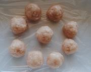 よくこねたひき肉を直径1.5センチほどのだんご状にする。 -