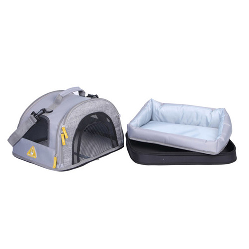 トラベルキャリ-バッグ、ハウス、ベッドの3タイプに変形できます。ベッドは取り外し可能な洗濯機で洗えるクッションです。後ろ側に広々としたファスナーポケットが付いていて、トイレシーツなどパートナー(愛犬愛猫)の小物も入れられます。便利なおやつポーチ付き。