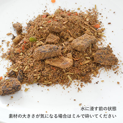 ※水の量はパートナー(愛 犬)のお好みに合わせて適宜追加してください。スープのような形状からかたまりのある形状まで幅広くアレンジができます。