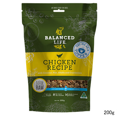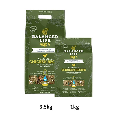 エアードライ製法(低温乾燥)なので、生の食材の栄養素をできる限り壊さずに確保することができ、生肉では気になるサルモネラ菌やリステリア菌のリスクも防ぐことができます。犬にとって理想の「BARF(生物学的に適正な食事)」を再現し、8割が鮮度の良いオーストラリア産のチキン (肉、胃、肝臓、心臓、腎臓、肺、骨)。残りの2割はスーパーフードを含む野菜や果物のみのレシピです。