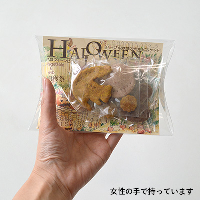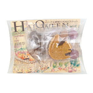 ハロウィンの起源でもある“収穫祭”をテーマに、今年採れた野菜、ハーブを練り込んだビスケットです。ハーブは国産有機栽培のこだわりハーブを使用しています。数量限定なので手に入るのは今だけ!小分けになっているので、お散歩やお出かけなど持ち運びにも便利です。お腹を空かせたパートナー(愛 犬)が『trick or treat!』とイタズラする前に、おひとついかが?