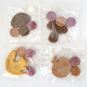 実りの秋をイメージしたリス・キノコ・リンゴ・お花のモチーフがかわいいビスケット。4種類の味と形が楽しめます。ハロウィン限定パッケージで、お友だちへのプレゼントにもピッタリです!また、GREENDOG限定商品なので購入できるのは当店だけ。