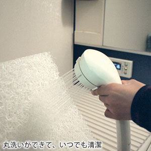 はっ水性の高い素材なので、シャワーで簡単に洗うことができます。また、日陰に干すだけですぐに乾きます。菌が繁殖しにくく臭いがつきにくい、制菌防臭加工つき(制菌防臭加工の認証、SKEマーク取得済み)。お手入れが簡単なので、マットが汚れても、いつでも清潔に使うことができます。