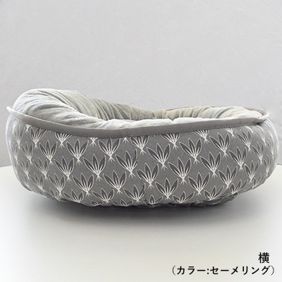 無地の生地はフリース素材でとってもあったか。ふんわり滑らかな肌触りです。また、ふちのあるタイプのベッドなのでパートナー(愛 犬・愛 猫)に安心感を与えます。ほど良いやわらかさで心地よく過ごせます。カドラーのふちの高さが低めなので、肢の短いパートナーやシニア犬が肢をひっかけにくいやさしい設計です。背中部分は広めのつくりなのであごのせができリラックスも。
