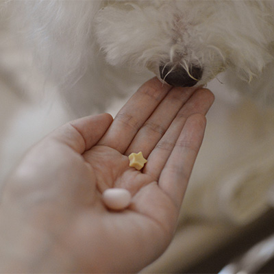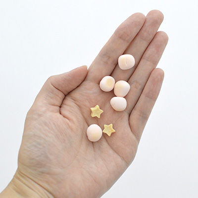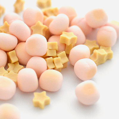 メレンゲ、じゃがいものデンプンにさつまいもペーストとトマト果汁を練りこみ、丁寧に焼き上げた優しい甘みの素朴なボーロ。サクサク食感なので、噛む力が弱いパートナー(愛 犬)にも与えやすいです。一緒に入っている星形のチーズで香りもアップ!トレーニングのご褒美にも使いやすいです。