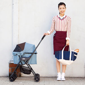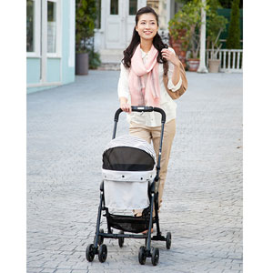 コムペット ミリミリは、ベビーカーメーカーのコンビの安全基準やノウハウに、獣医師のアドバイスを取り入れた高機能ペットカートです。ママ(オーナー様)とパートナー(愛 犬)の目線で考え、作られています。
