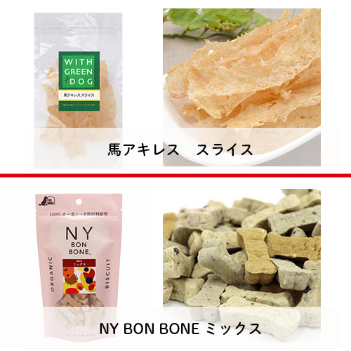 【下記より3個お選びください(組み合わせ自由)】※原材料・成分値・カロリーなどは各ページでご確認ください。 ・マグロチップス18g ・NY BON BONE ミックス80g ・ウィムズィーズ ハブラシS 7個 ・しっとりやわらかジャーキー 鮭6本 ・午後のおやつ やわらか芳醇ささみ20g ・午後のおやつ やわらか鹿肉グリル20g ・午後のおやつ やわらか飴色りんご3ピース×3包 ・馬背すじスティック 馬肉巻き レギュラー50g ・サプリビスケット グルコサミン&乳酸菌60g ・鮭スティック 細切り30g ・ささみジャーキー60g ・ミネラルカットジャーキー 馬肉40g ・馬アキレス スライス25g ・ほしいもキューブ80g ・サクッとカンガルー肉30g ※こちらの商品は、セット内容をひとつにまとめた梱包はせずにお届けしております。 |