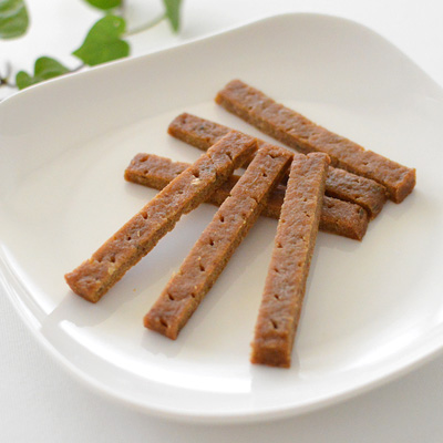 また、ジャーキーをオーブンで焼いてからレトルト加工(殺菌)するという2段階製法により保存料無添加でも長期間の保管が可能に。添加物が気になるオーナー様にもうれしい商品です。