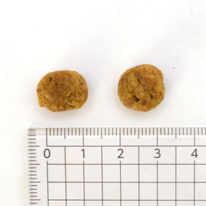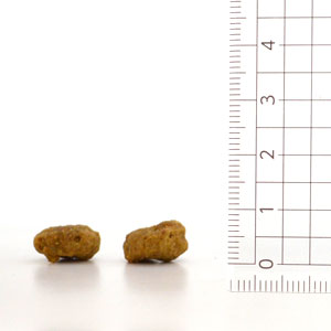 成分値 タンパク質:24%以上、脂質:12%以上、粗繊維:4.5%以下、灰分:8.4%以下、水分:10%以下、カルシウム:1.2%以上、リン:1%以上、オメガ6脂肪酸:1.80%以上、オメガ3脂肪酸:0.30%以上