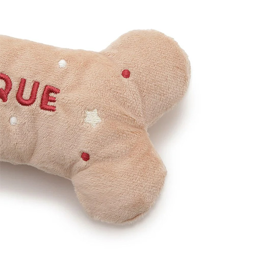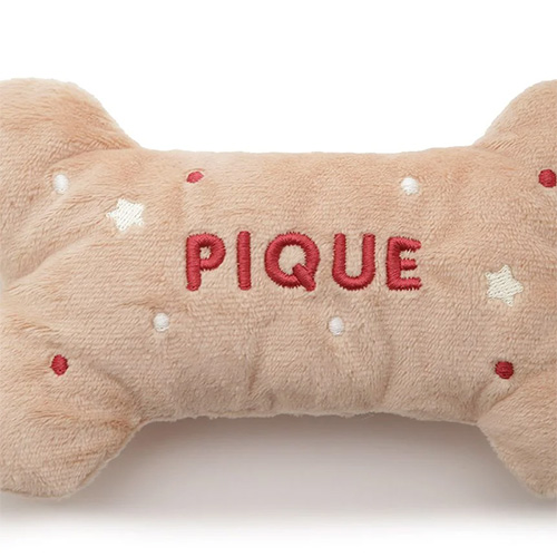 くわえても楽しい!投げても楽しい!ふんわり丸いフォームのボーン型おもちゃ。スクィーカー(鳴き笛)やカサカサ音がなる素材が入っているので、パートナー(愛犬・愛猫)も飽きません。スター柄とPIQUEのロゴ刺繍入り。お友だちへのプレゼントにも!数量限定ですので、お早めに!