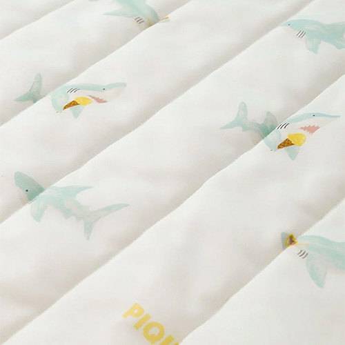 肌に触れるとひんやりとした冷感が得られる、接触冷感機能のさらっとした生地を使用しました。リビングやお使いのベッドの上に置いて、快適に過ごせます。美味しそうなアイスを片手に泳ぐ、キャッチーなシャークをモチーフにしたデザイン。色はミントとピンクの2色展開。数量限定ですのでお早めに!