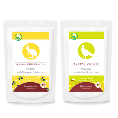 セット内容: ・HERRMANN’S(ヘルマン) サマー・メニュー キジと洋ナシ ハニーレモン ・HERRMANN’S(ヘルマン) サマー・メニュー カンガルー&欧州ブルーベリー |