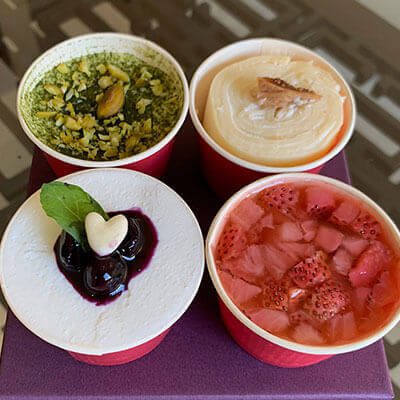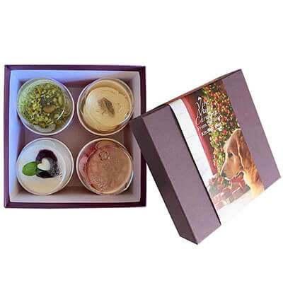 4つのカップをボックスに入れて、冷凍でお届けします。家族で楽しむクリスマスのご馳走としてはもちろん、お友だちとのクリスマスパーティーにもおすすめです。