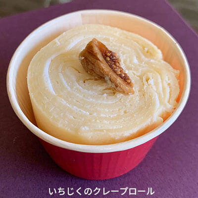 【いちじくのクレープロール】牛乳、カテージチーズ、薄力粉、鶏卵、ヨーグルト、ドライイチジク、キャノーラ油 、