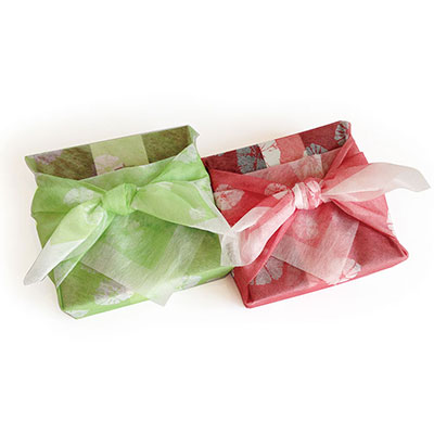 サイズ 14cm×14cm×高さ4cmのお重入り×2 風呂敷包み