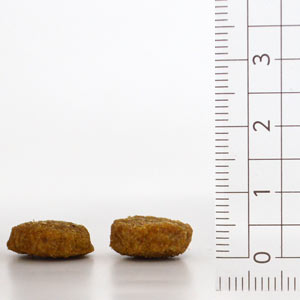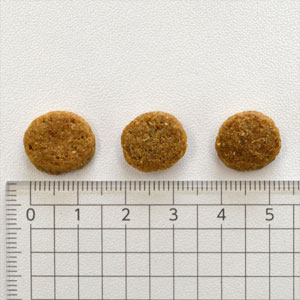| 成分値 | 粗タンパク質 24.0%以上、粗脂質 12.0%以上、粗繊維質 3.5%以下、粗灰分 7.0%以下、水分 10.0%以下、カルシウム 0.8%以上、リン 0.7%以上、DHA 0.1%以上、オメガ6脂肪酸 2.00%以上、オメガ3脂肪酸 0.35%以上 |