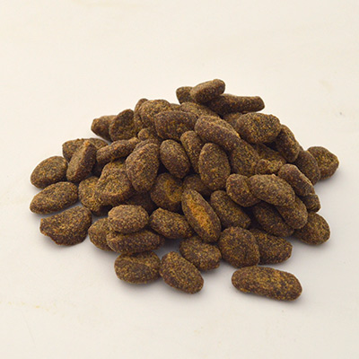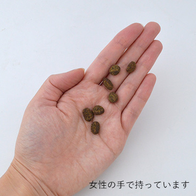 こちらの商品はタンパク質の配合量が多いために成形が難しく、一粒ひとつぶの形状がいびつになっています。品質や中身に問題はございません。予めご了承ください。