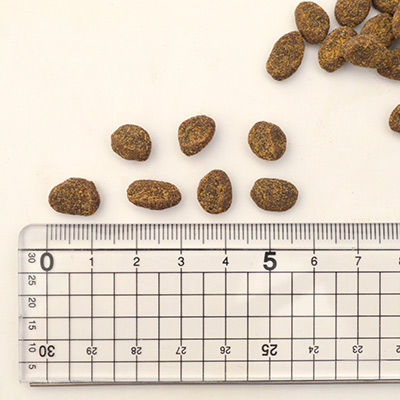 成分値 粗タンパク質(以上) 44 %、粗脂肪(以上) 15 %、粗繊維(以下) 6 %、水分(以下) 10 %、カルシウム(以上) 1.8 %、リン(以上) 1.5 %、タウリン(以上) 0.1 %、DHA / EPA (以上) 0.15 % / 0.15 %、オメガ6/3 脂肪酸*(以上) 3 % / 1.2 %、マグネシウム(以下) 0.1 %、L-カルニチン 56 mg/kg、総微生物*(以上) 100M CFU/lb(ラクトバチルスアシドフィルス、プロバイオティクス、ラクトバチルスカゼイ)
