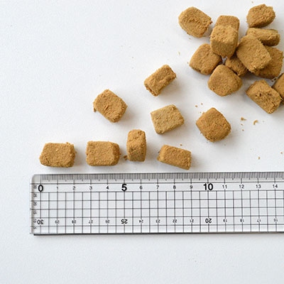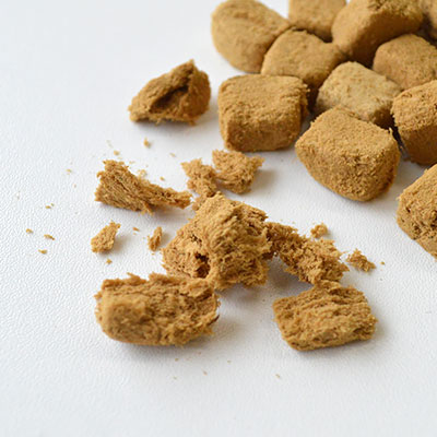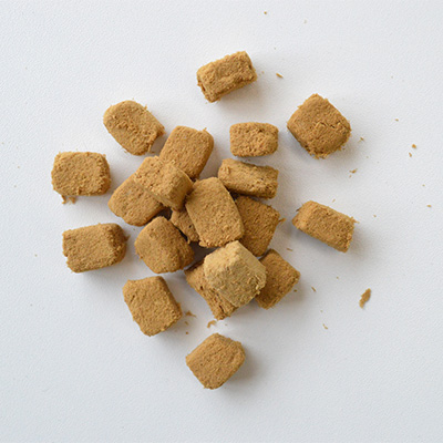 指で少し潰しただけですぐにほぐれるやわらかい質感なので、お口の小さなパートナー、シニア犬にも与えやすくおすすめです。また、新鮮な魚をまるごと使うことでお魚のおいしい香りもしっかりと感じられますので、しつけやご褒美、ふりかけのようにしてごはんのトッピングにも最適!食いつきアップにも役立ちます。