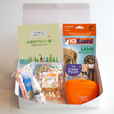 ◆ガイドブック お散歩デビュー編 ◆お散歩グッズ ◆ケア用品 ◆おやつ ※セット内容は一例です。 |