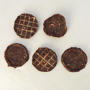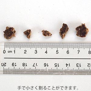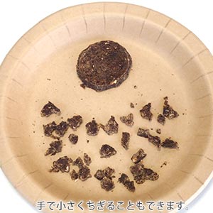 直径約4~5センチ、厚さ4ミリほどで食べやすいサイズ。手で割って与えることもできる、ほど良い硬さです。